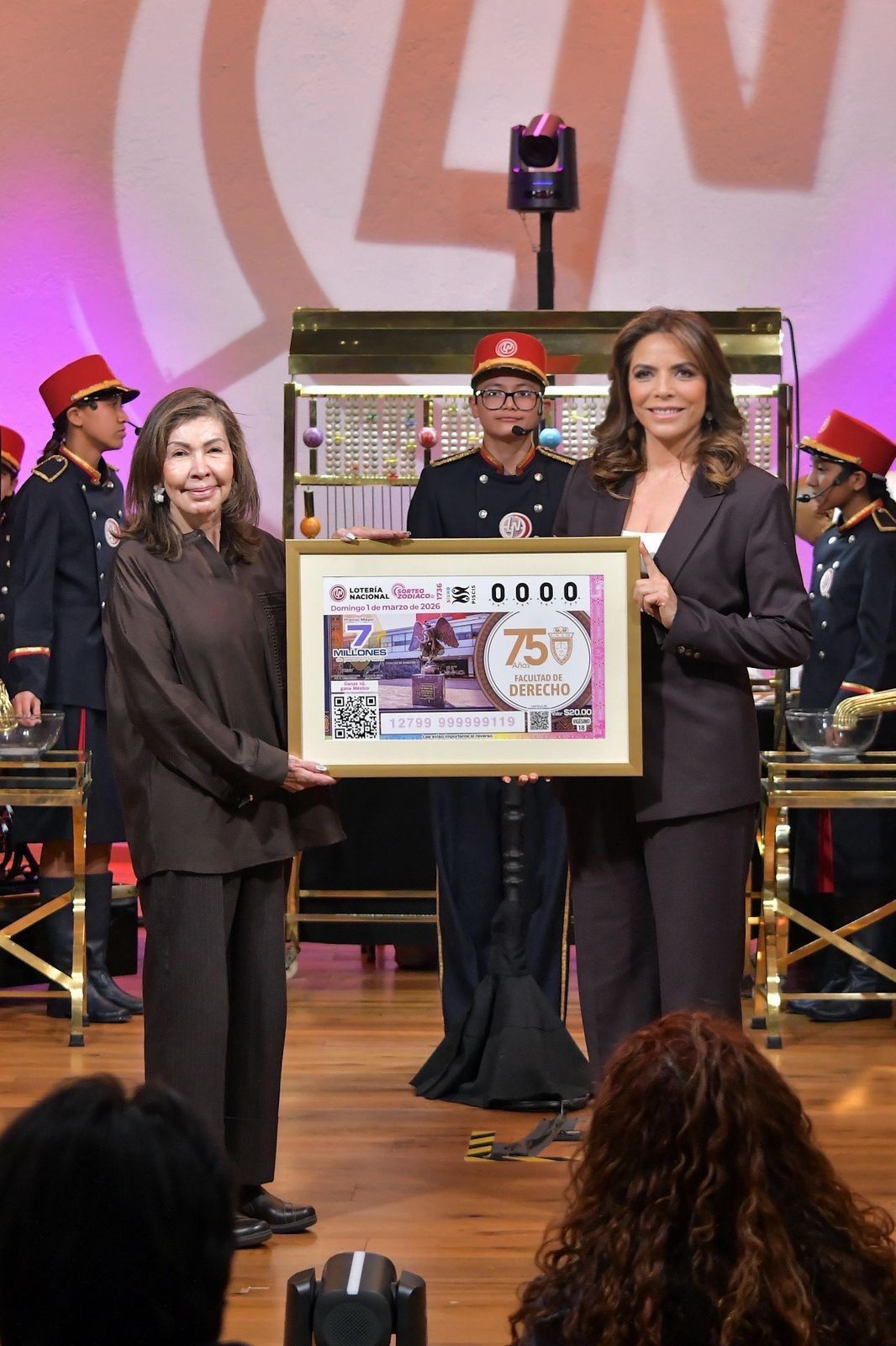 Desde el teatro sede de los Sorteos Tradicionales en la Ciudad de México, encabezaron este acto, la directora general de Lotería Nacional, Olivia Salomón, y Sonia Venegas Álvarez, directora de la Facultad de Derecho de la UNAM.